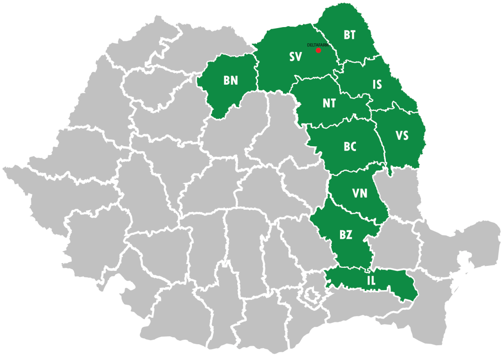 Activitatea sa se extinde în 10 județe din România, respectiv Suceava, Botoșani, Neamț, Iași, Vaslui, Bacău, Bistrița-Năsăud, Vrancea, Buzău și Ialomița. Această rețea extinsă reflectă angajamentul Deltafarm de a furniza produse de calitate și soluții eficiente pentru sănătate, asigurându-se că acestea ajung la un număr cât mai mare de pacienți și clienți din țară.